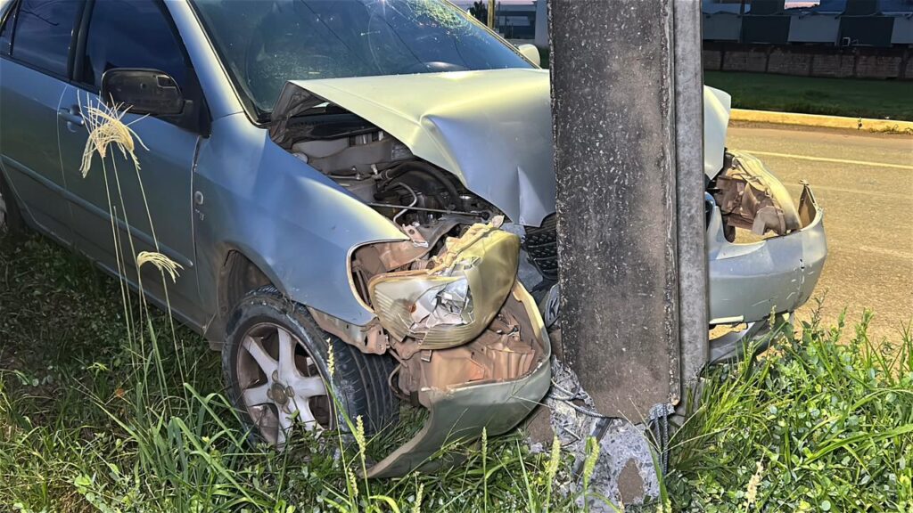 Destaque Corpo de Bombeiros atende acidente com carro contra poste na Avenida Noêmia Dalmolin, em Sorriso