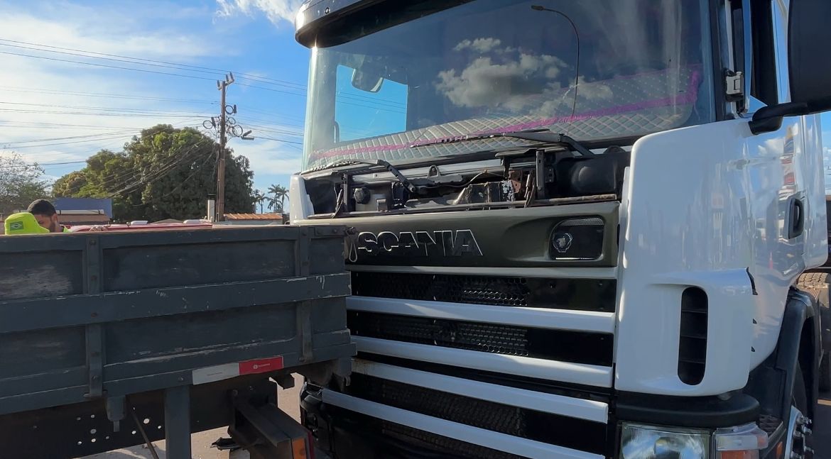 Dupla suspeita de furtar módulos de caminhão é abordada pela PM próximo ao distrito de Caravagio, em Sorriso