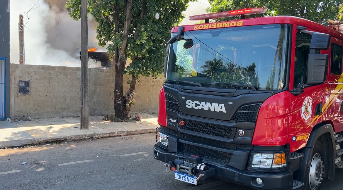 Equipes do Corpo de Bombeiros foram acionadas na manhã desta segunda-feira (29) para conter um incêndio na Avenida Novo Horizonte, no bairro Rota do Sol, em Sorriso.