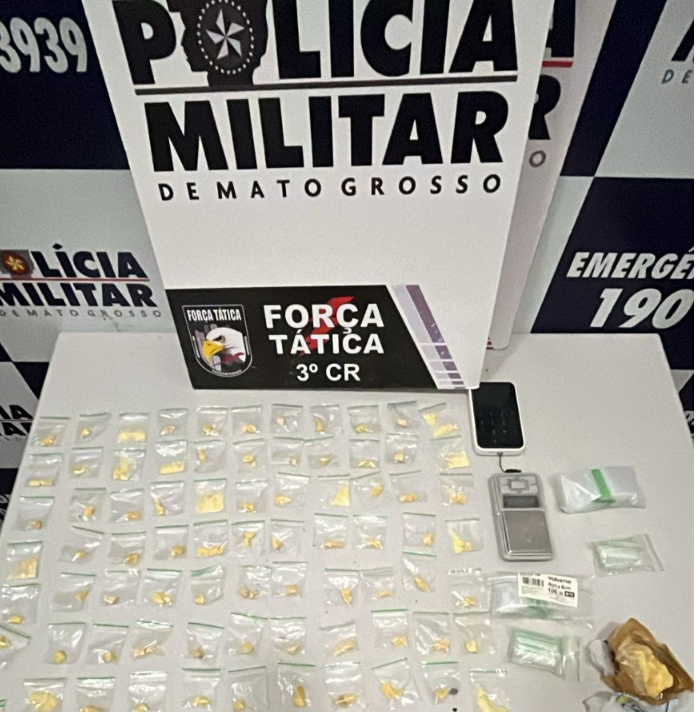 Na primeira ação, no bairro Jardim Tropical, a equipe da Força Tática abordou um jovem de 19 anos, que estava sentado em frente a uma casa. Ele usava tornozeleira eletrônica e respondia por tentativa de homicídio. Ao notar a presença dos policiais, tentou esconder porções de entorpecentes. Durante a revista, foram encontradas porções de cocaína e maconha. O jovem relatou que, momentos antes, uma pessoa havia deixado os entorpecentes com ele para ser vendida.