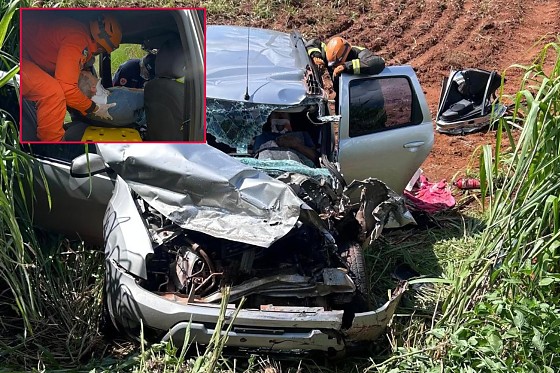 Com a força do impacto, o furgão tombou no meio da pista, enquanto o carro de passeio foi arremessado para fora da rodovia. O motorista do automóvel, um homem de 52 anos, ficou com as pernas presas às ferragens e precisou ser resgatado pelo Corpo de Bombeiros com o uso de ferramentas de corte.