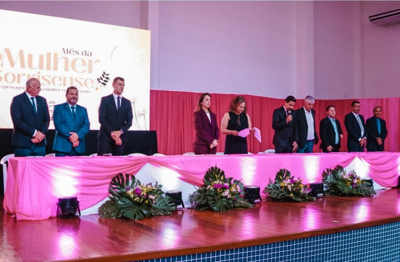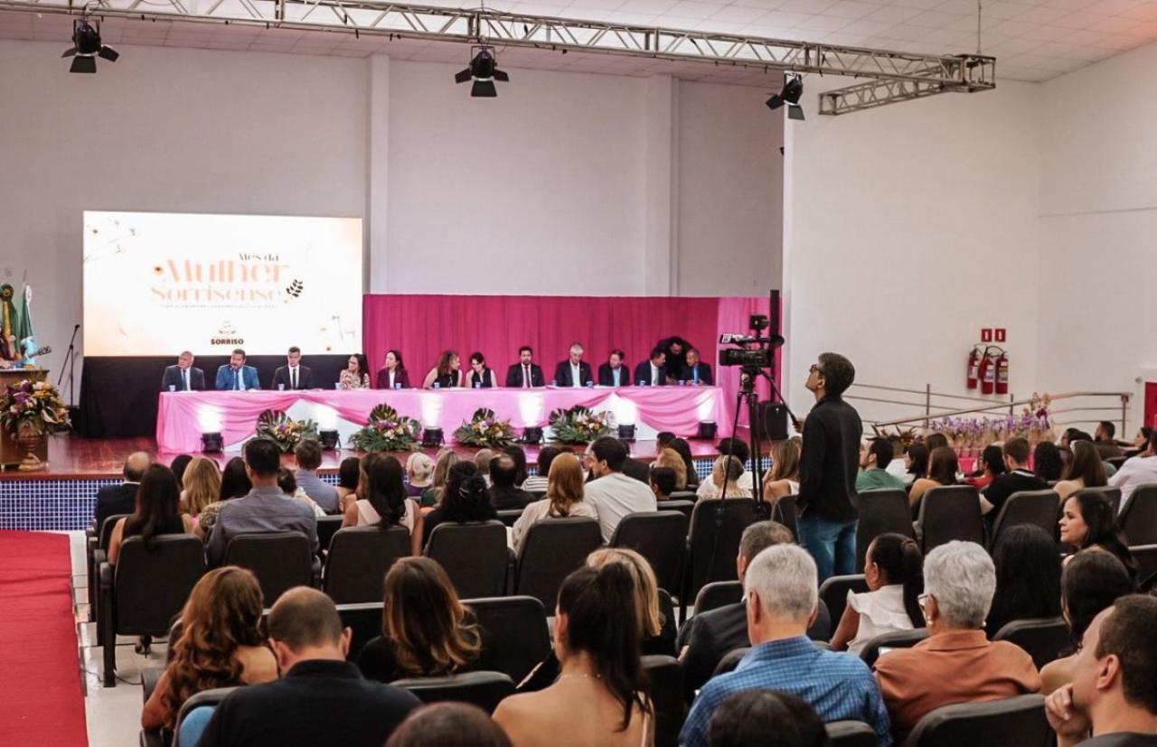 Em homenagem ao Dia Internacional da Mulher, a Câmara Municipal de Sorriso realizou, na noite desta terça-feira (2), sessão solene no Centro de Eventos Ari José Riedi para a posse da Procuradoria da Mulher e a entrega do Certificado Mulher Sorrisense.