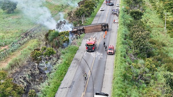 De acordo com o Corpo de Bombeiros, a equipe foi acionada após a informação de uma colisão envolvendo uma carreta e um carro de passeio. Ao chegarem ao local, os militares encontraram o automóvel completamente danificado, com uma vítima em óbito presa às ferragens. A carreta estava em chamas após o impacto.