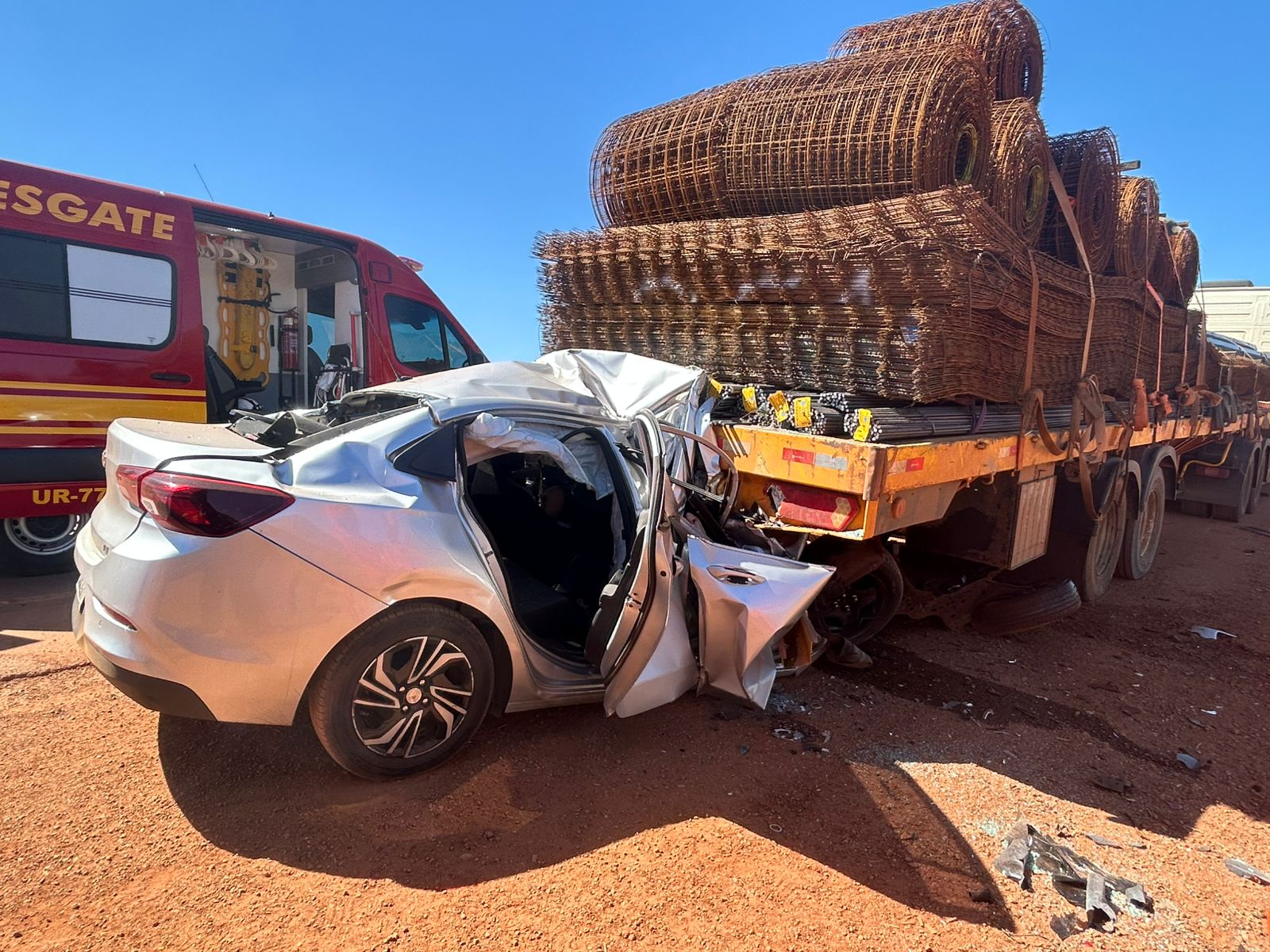 De acordo com as primeiras informações, um caminhão estava estacionado às margens da pista, e o condutor conferia a carga no momento em que um carro de passeio colidiu violentamente na traseira do veículo pesado.