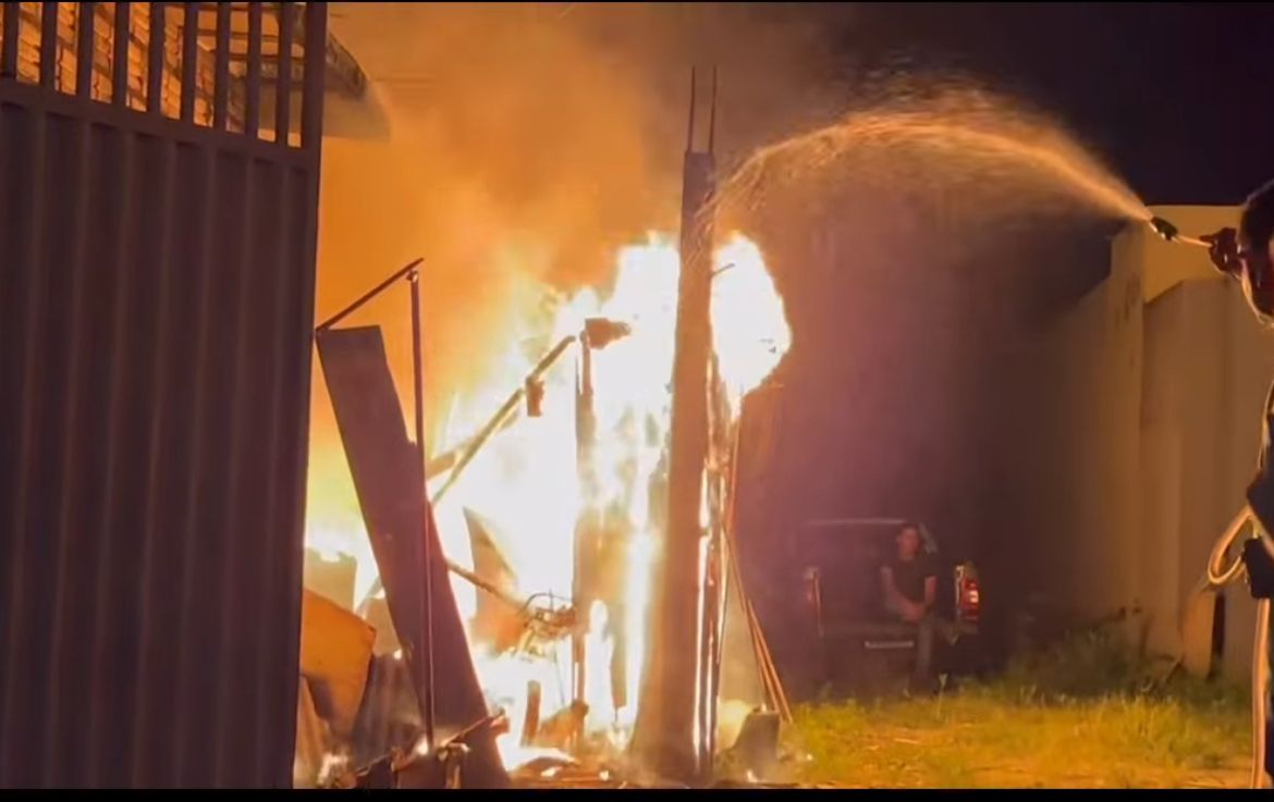 De acordo com informações locais, o homem estaria embriagado no momento da briga. Durante a discussão, ele agrediu a companheira e, em seguida, ateou fogo no imóvel. As chamas rapidamente se espalharam, destruindo completamente a residência.