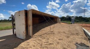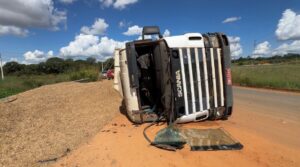 Motorista fica ferido após tombamento de carreta na MT-560 em Sorriso