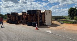 Segundo relato do próprio condutor, ele realizava a rotatória quando perdeu o controle da carreta, ocasionando o tombamento do veículo. As circunstâncias do acidente deverão ser apuradas.