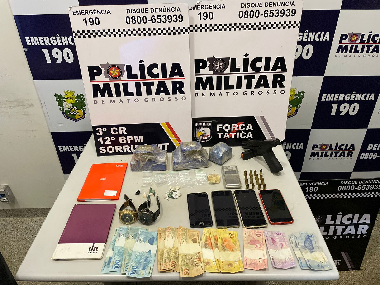 Todos os envolvidos foram presos em flagrante e encaminhados à delegacia de polícia civil de Sorriso. Além das apreensões, foram encontrados cadernos com anotações relacionadas ao tráfico ilícito de drogas, além de uma quantia em dinheiro na residência do casal, totalizando R$ 679,00.