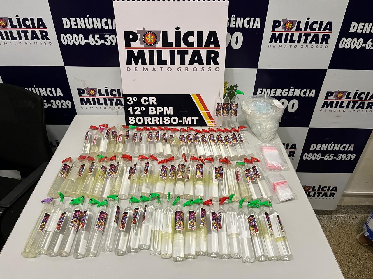 Uma ocorrência de desentendimento entre um casal no bairro Jardim Primavera, em Sorriso, terminou com a apreensão de diversos frascos de lança-perfume e o encaminhamento de um homem à delegacia, na noite desta semana.