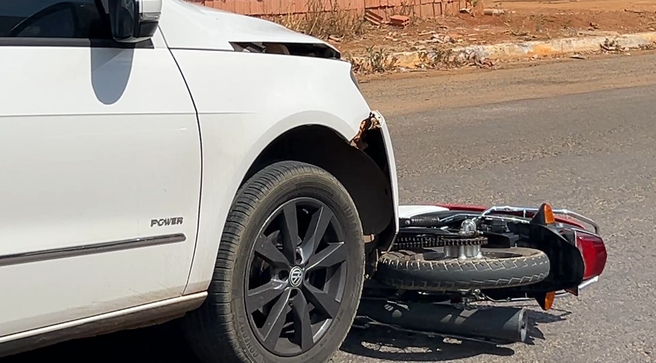 Um grave acidente de trânsito foi registrado no início da tarde desta sexta-feira (5), no cruzamento das ruas Vale Dourado e Inivaldo Bedin, em Sorriso. A colisão envolveu um veículo Gol, de cor branca, e uma motocicleta Honda.