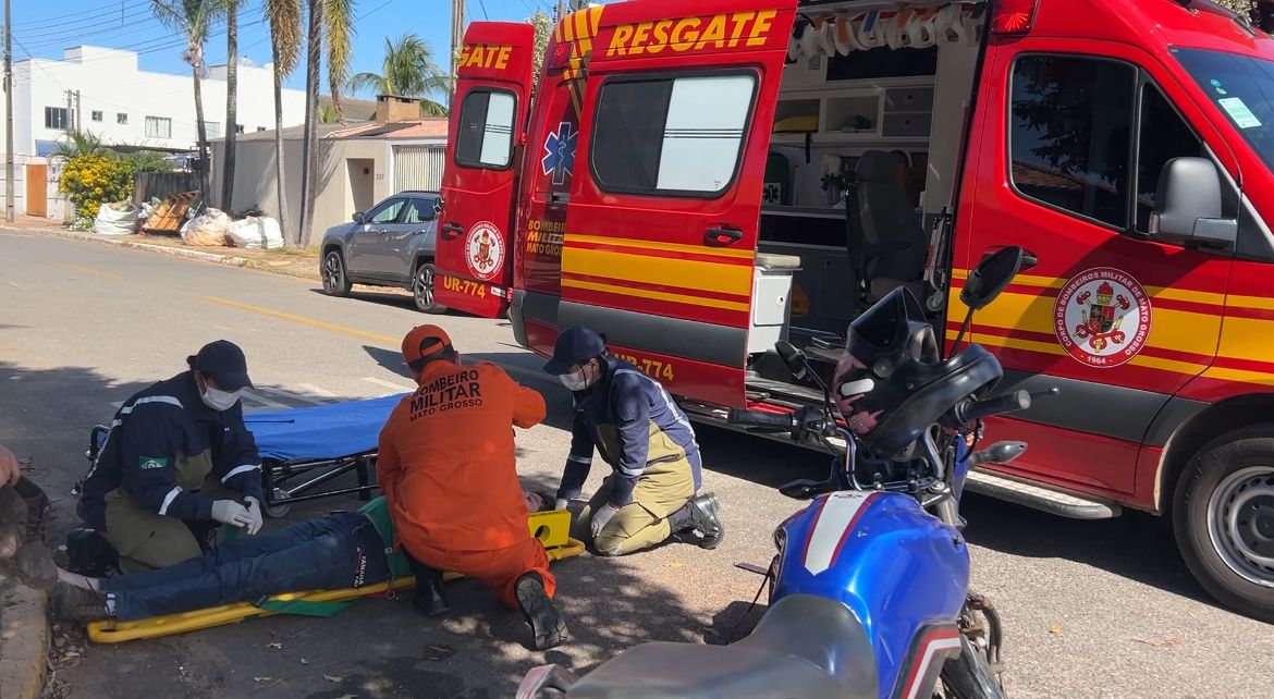 Um grave acidente envolvendo uma motocicleta e um ônibus foi registrado na tarde de quarta-feira (23), no cruzamento da Rua dos Desbravadores com a Rua Pará, no bairro das Acácias, em Sorriso.
