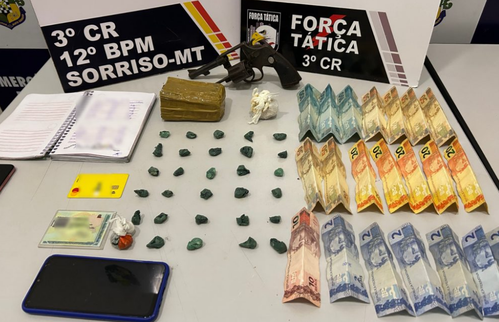 Em continuidade às operações em Sorriso, resultou na apreensão de entorpecentes, arma de fogo e materiais relacionados ao tráfico de drogas na noite de quarta-feira (21). A abordagem teve início nas proximidades de uma oficina localizada na esquina das ruas Palmares e Passo Fundo, onde dois indivíduos foram abordados.