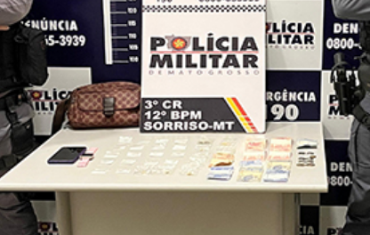 Uma jovem de 22 anos foi detida na noite de terça-feira (29) durante uma ronda policial na Rua Tangará, em Sorriso. Segundo a Polícia Militar, a suspeita, que usava blusa branca, atravessou a via de forma repentina ao perceber a aproximação da viatura, aparentando nervosismo.